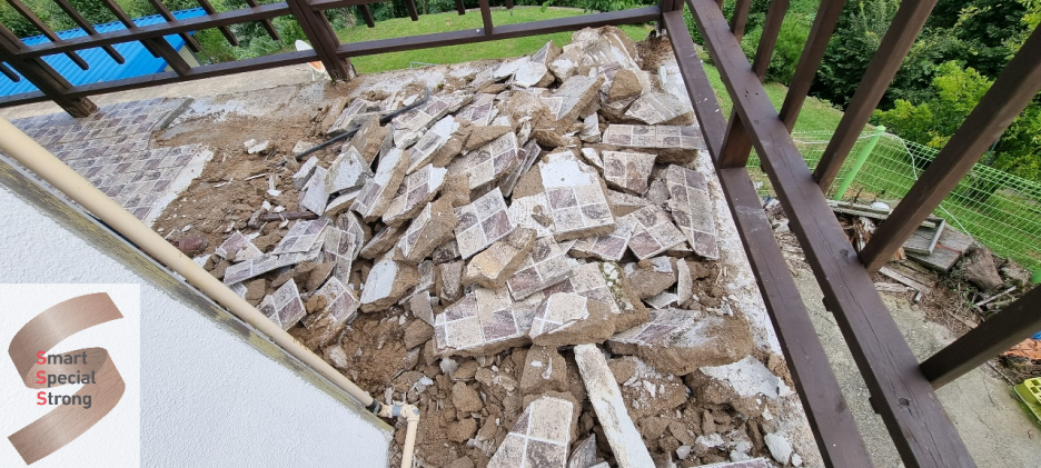 오래된 방부목 데크와 좁은 면적에 불필요했던 울타리까지 철거 후