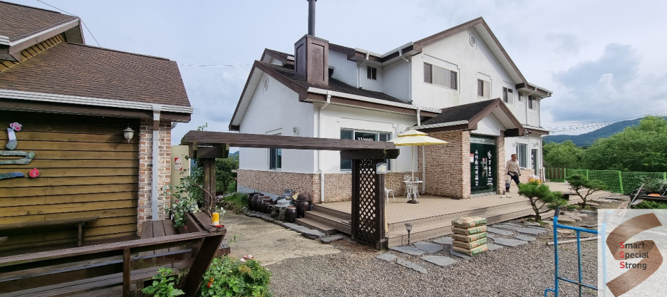 경북 성주군 대표 농가맛집 밀 합성데크(미네랄데크)와 울타리 시공 완료된 현장입니다.