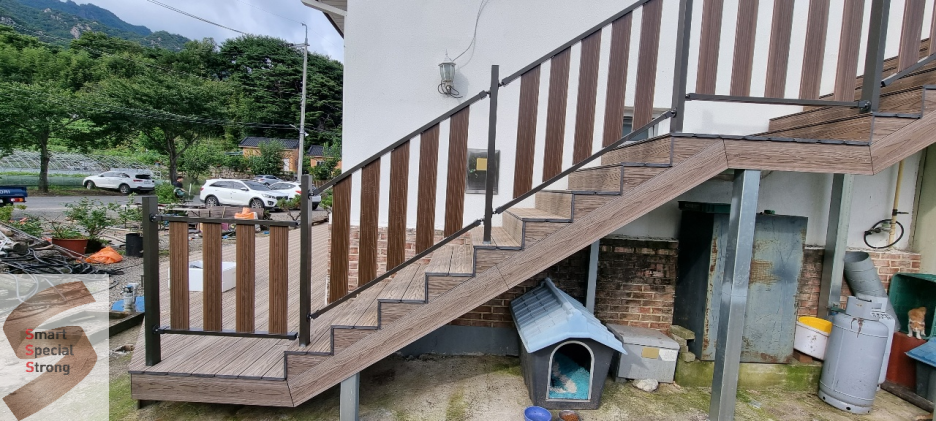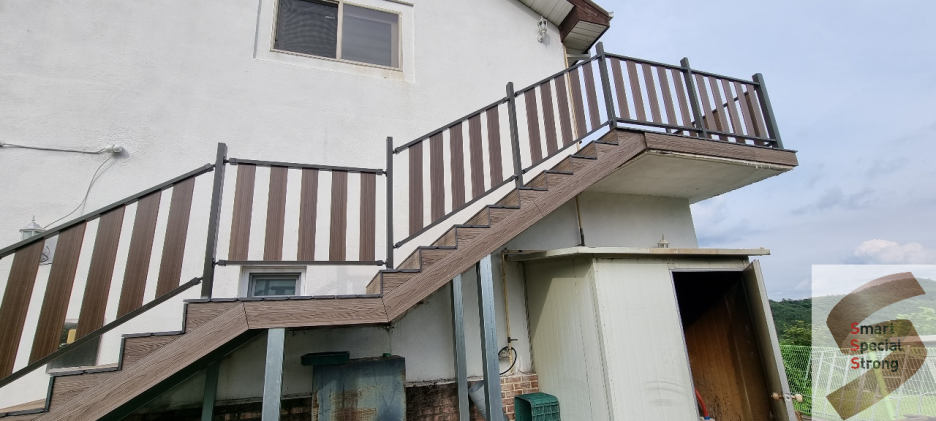 튼튼하고 변형이 없는 미네랄데크와 울타리 디자인 또한 살린 멋진 계단이 되었습니다.