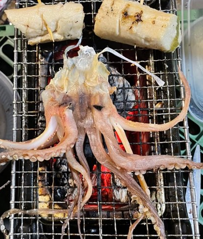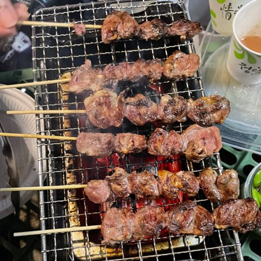 화로에서 구운 소고기, 양미리, 염통, 가래떡, 마른 오징어