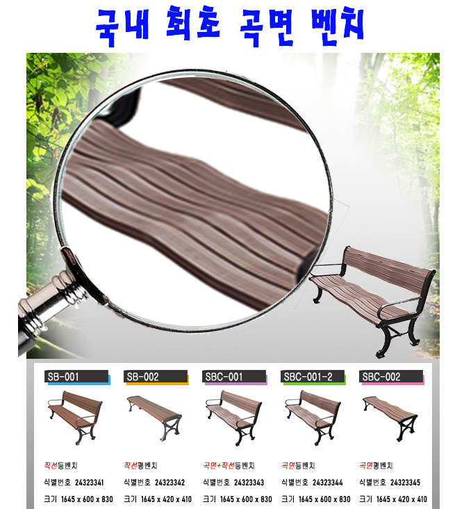 또한 국내 최초 곡면 벤치로 착감 또한 기존의 직선 벤치보다 뛰어나며 편안함을 더해줍니다!