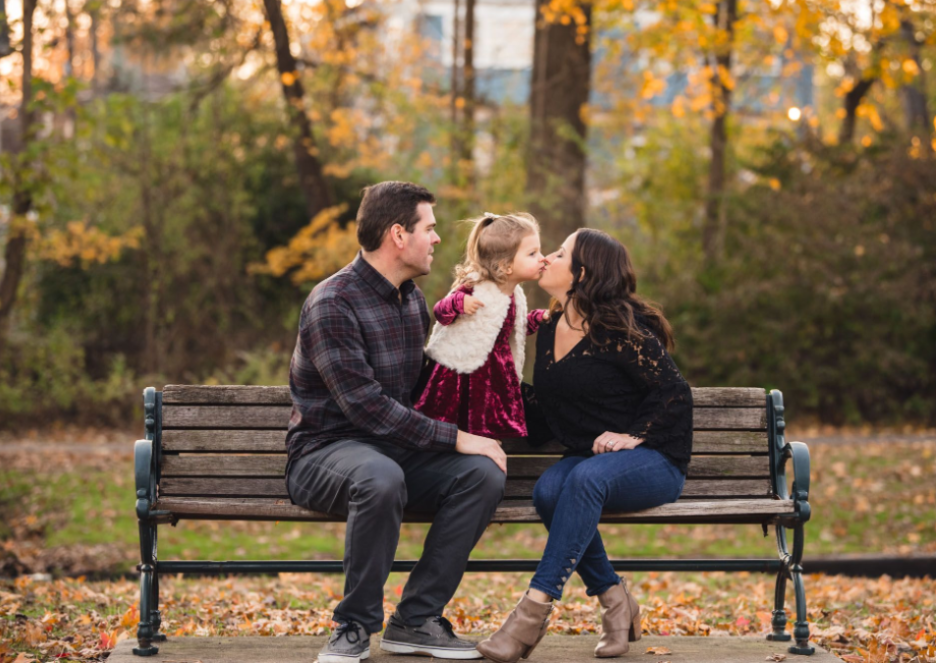 어릴 적 가족들과 공원 벤치에 앉아 간식을 먹거나