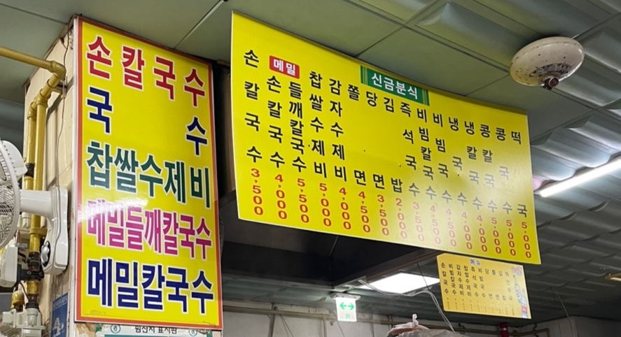1. 시장이라서 자리가 다닥다닥 붙어있어서 신경쓰였음.