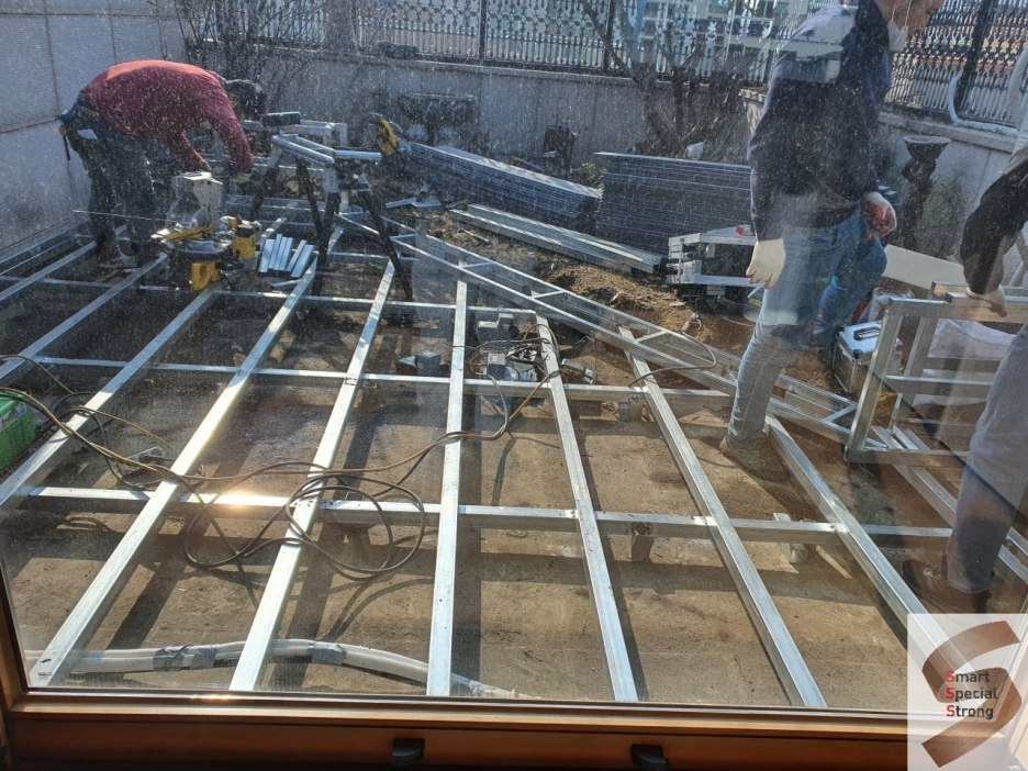 아연각 하지 작업 후 미네랄데크(합성데크) 그레이(GY)가 시공되어