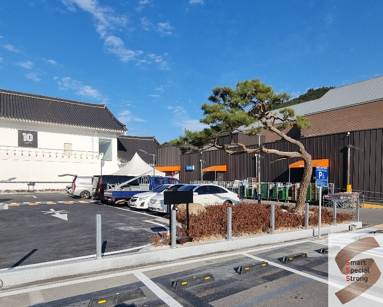 저희는 양쪽에 차량 출입구 쪽 손님들의 안전과 야간 가시성을 위한
