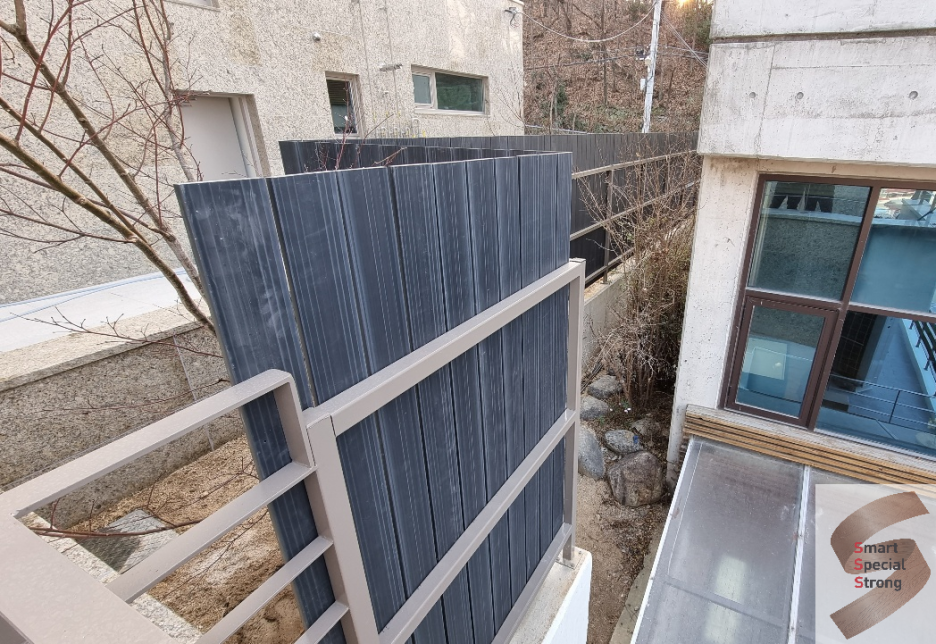 옆집과 분리된 공간과 느낌을 주기 위해서 꼭 필요한 가림막 시공입니다.