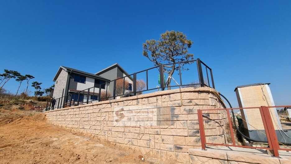 오늘은 충남 서산에 위치한 넓은 부지의 전원주택에 미네랄 판재 가림막 시공 현장입니다~!