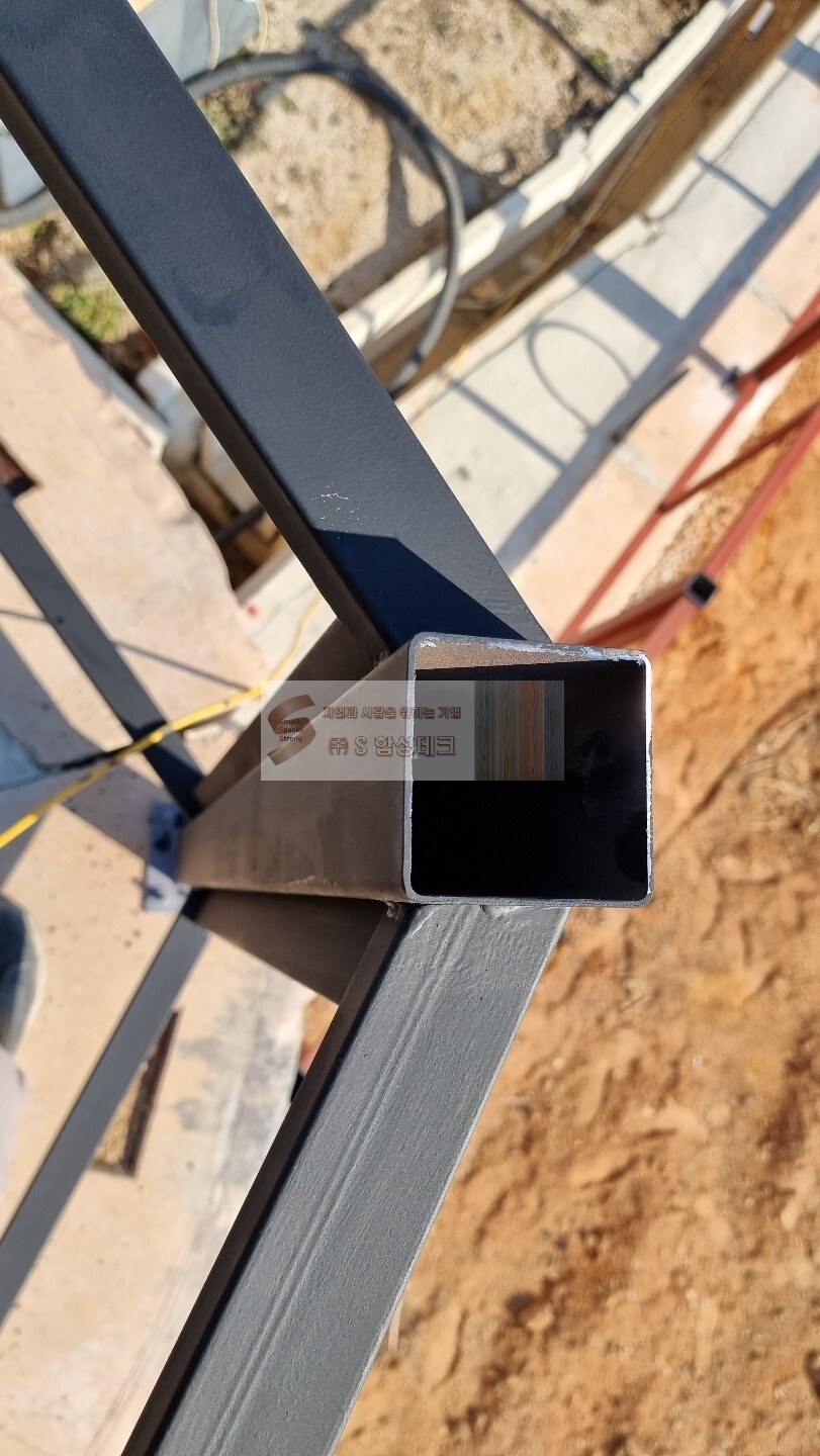 일직선이 아닌 꺾이는 관절 구간들도 각도에 맞게 재단하여 튼튼하게 용접됩니다.