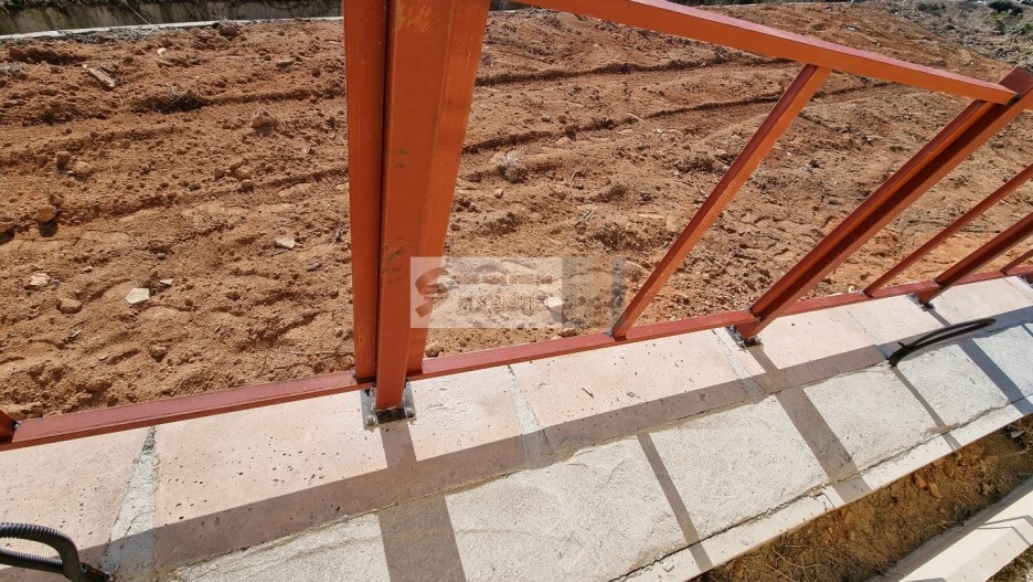 플레이트판에 기둥 용접 후 앙카 고정하여 기둥사이의 간격을 잡아주고