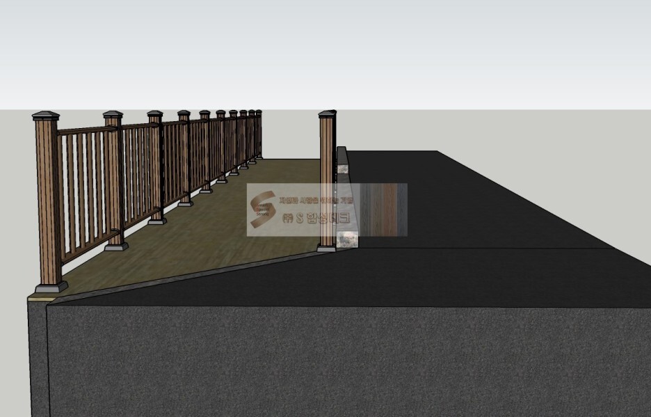 이후, 다리와 차도와의 경계는 S합성데크의 합성목재 울타리로 대체될 예정입니다.