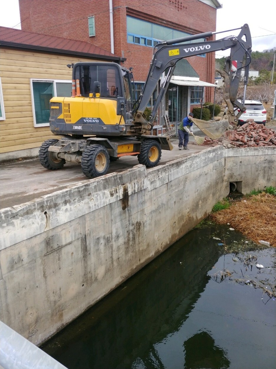 [ 작업 시 안전에 최선을 다하였지만... 그래도 하천에 빠질까 실제로는 긴장한 모습입니다^^;; ]
