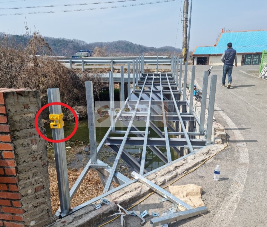 오늘은 경상북도 경산시에 위치한 하천 위 데크 다리 (워킹브릿지) 공사 현장입니다.