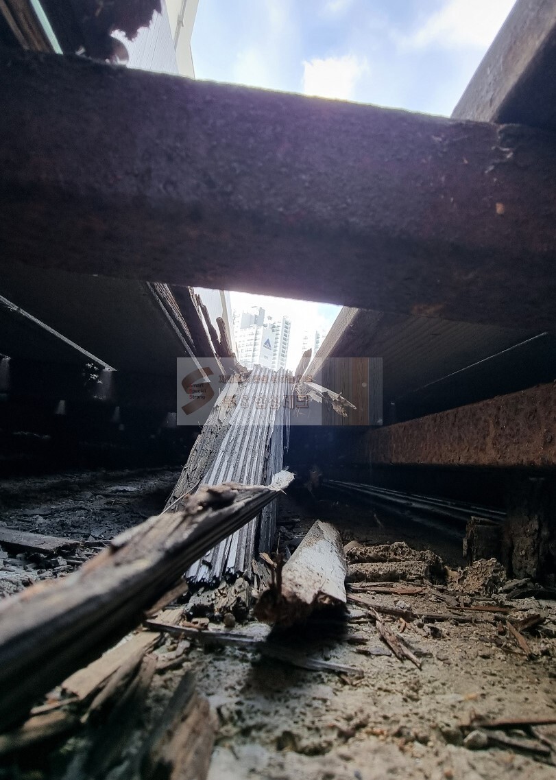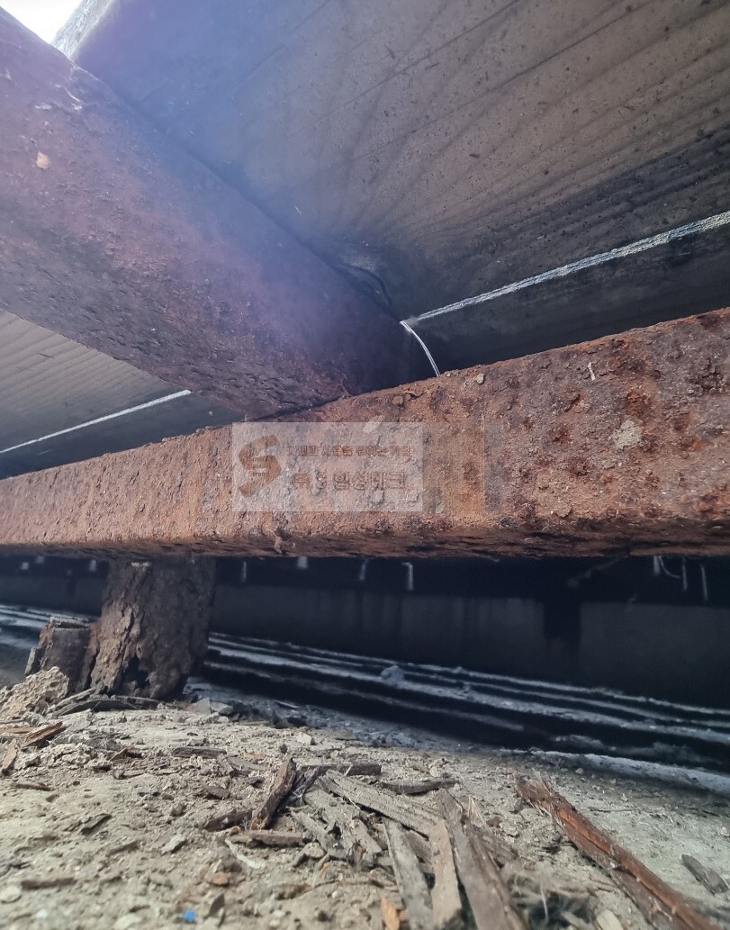 상판 방부목데크 뿐만 아니라 하지철물까지 심한 녹과 부패가 온 상황이라