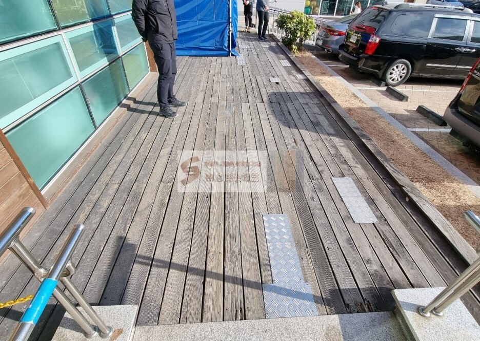 또 원활한 휠체어 슬로프 이용을 위해 슬로프 앞은 상판작업 전까지