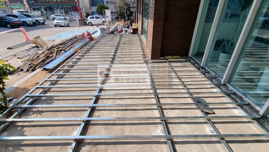 멍에와 장선을 현장에 맞는 튼튼한 간격으로 꼼꼼히 용접 시공 하였습니다.