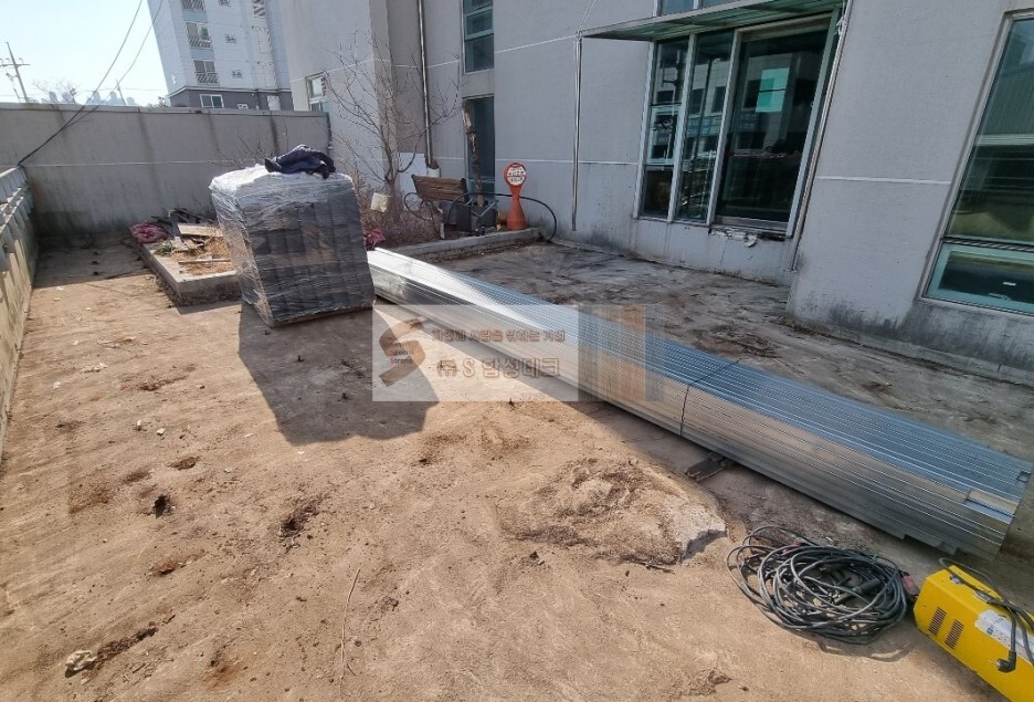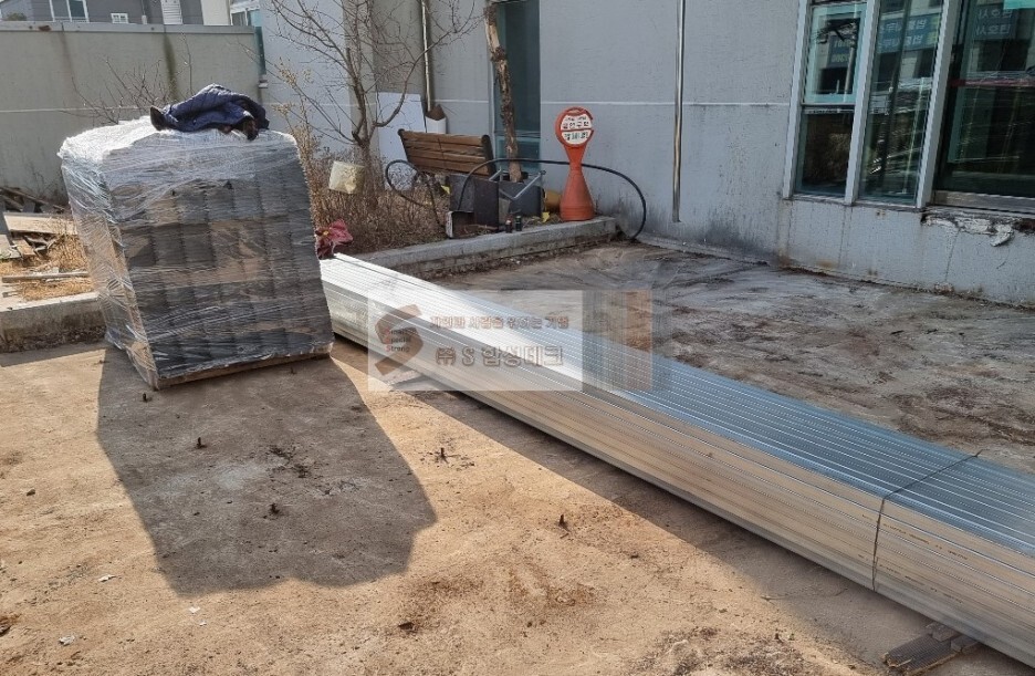 철거 후 미네랄데크 공사에 필요한 자재들 [데크자재,아연도각관 등]은