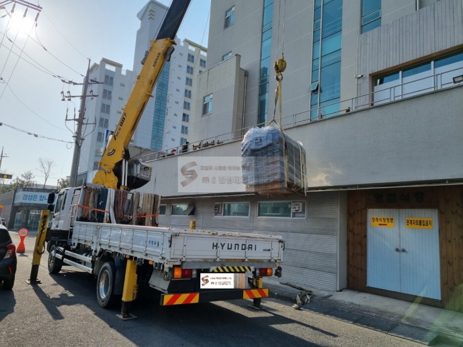 크레인을 이용하여 병원 뒷편에서 양중 작업을 하여 자재도 안전하게 하차완료^^