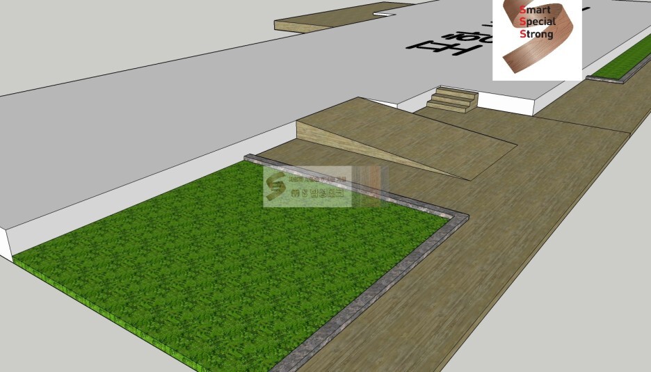 데크가 들어설 공간 옆으로 화단의 경계석이 있기 때문에