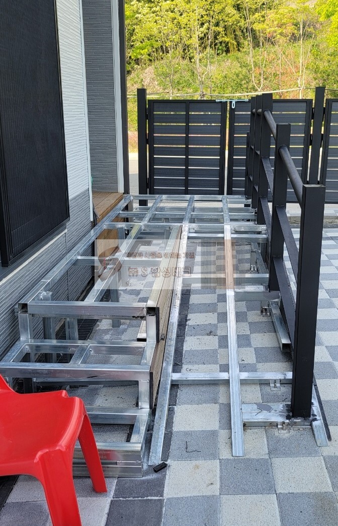미네랄데크와 판재(합성데크재)를 이용하여, 신축 주택에 굉장히 실용적인 구조물을 완성하였습니다^^