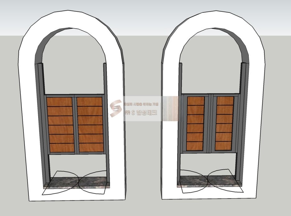 마찬가지로 미네랄판재를 중간재로 활용하여 가림막 및 대문 제작을 기초 스케치하여 계획 하였습니다.