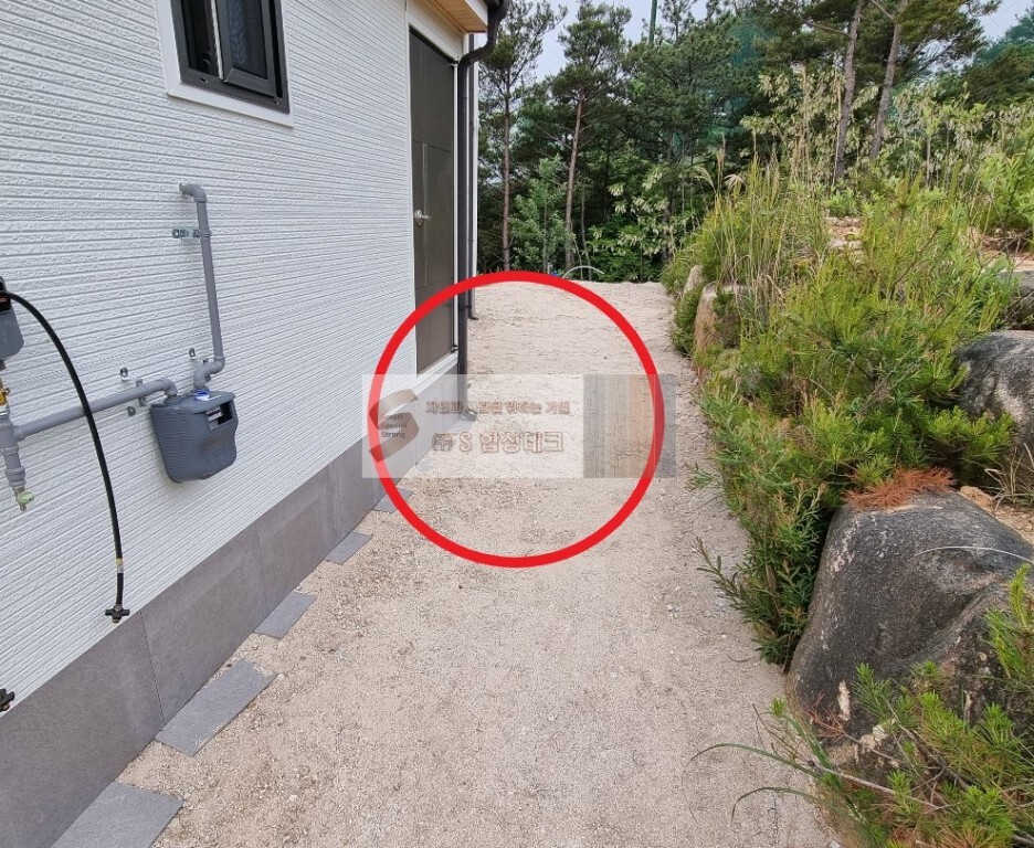 시공된 데크 측판 보다 조경 후 땅 높이가 더 올라와 마감이 깔끔하게 될 예정입니다.
