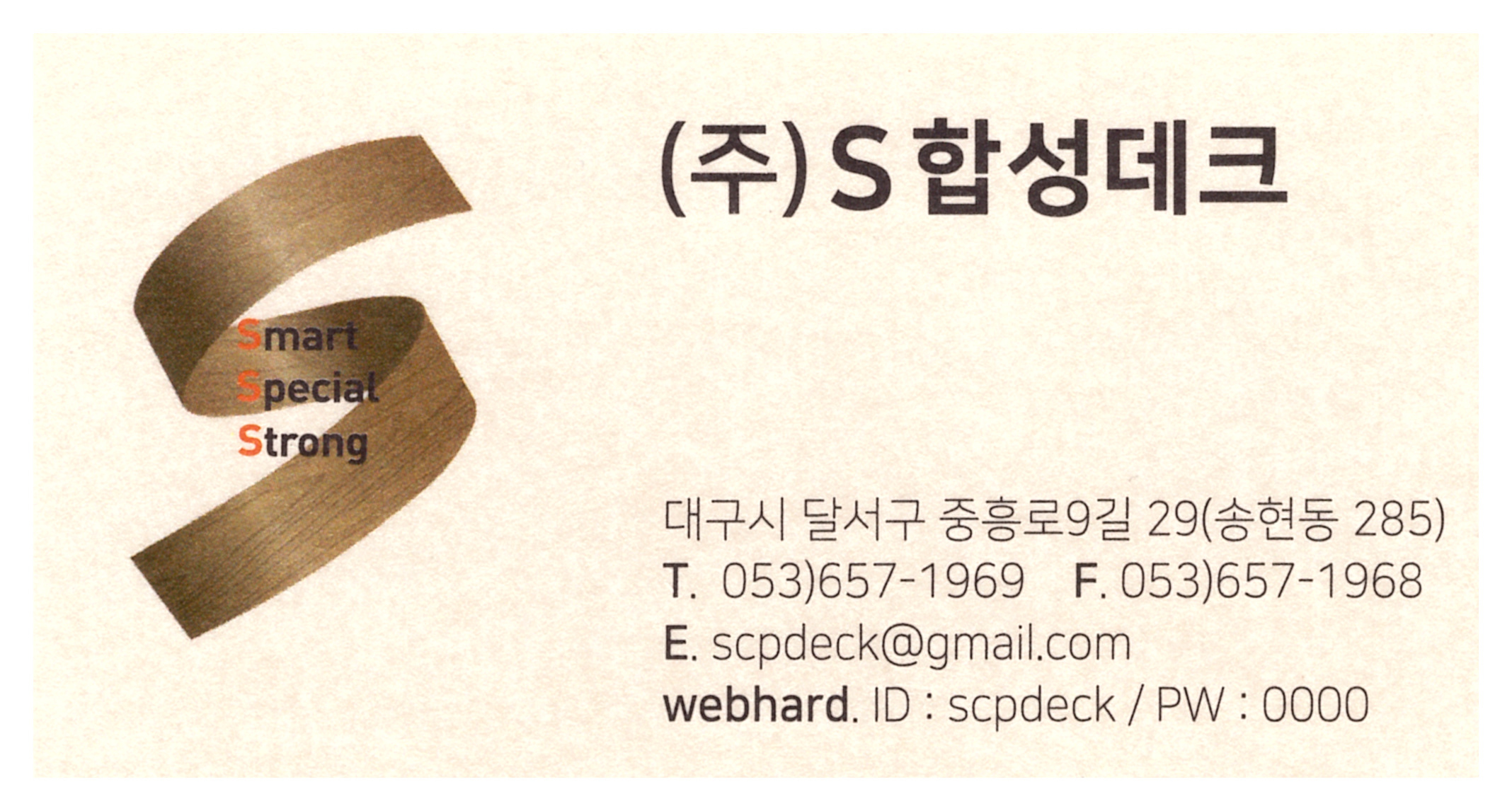 자연과 사람을 위하는 기업 ㈜ S합성데크입니다. 친환경 합성목재 선두 기업이자 제조 1세대 업체인 ㈜ S합성데크는 국내 최고의 기술력과 경험을 바탕으로 합성목재 곡면휀스에 이어 신자재 미