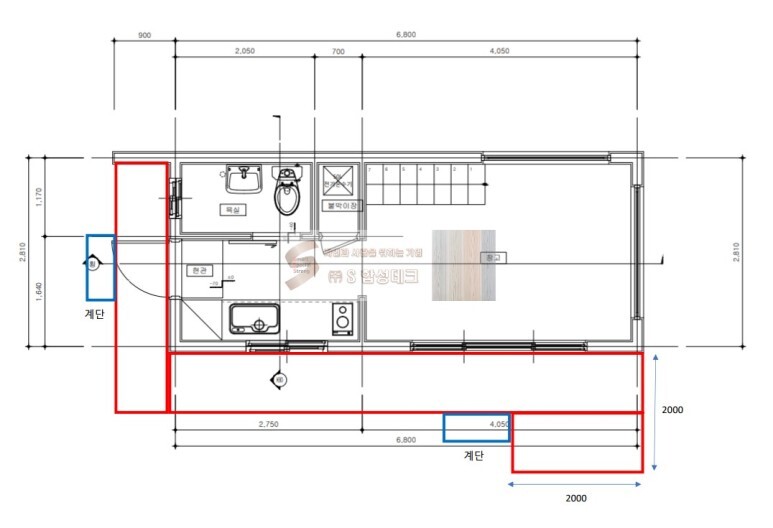 농막의 평면도에 시공 면적을 직접 표시하시고, 데크 공사 의뢰를 주셨습니다!
