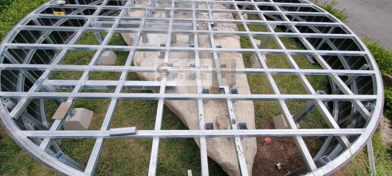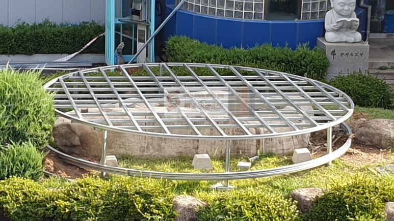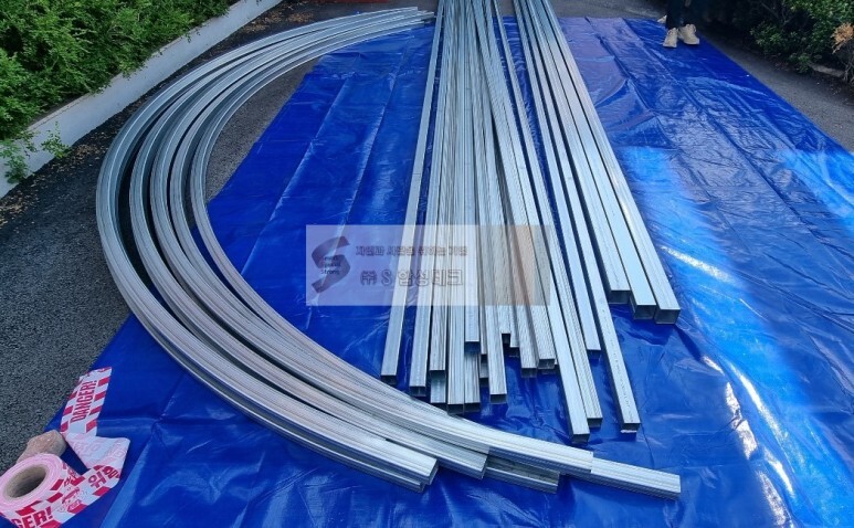 (원형 데크를 계획하였으니, 지름에 맞게 밴딩된 각관도 준비하였습니다.