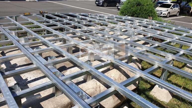 기준보다 많이 간격들을 좁혀 멍에,장선을 튼튼하게 용접 작업 하였습니다.