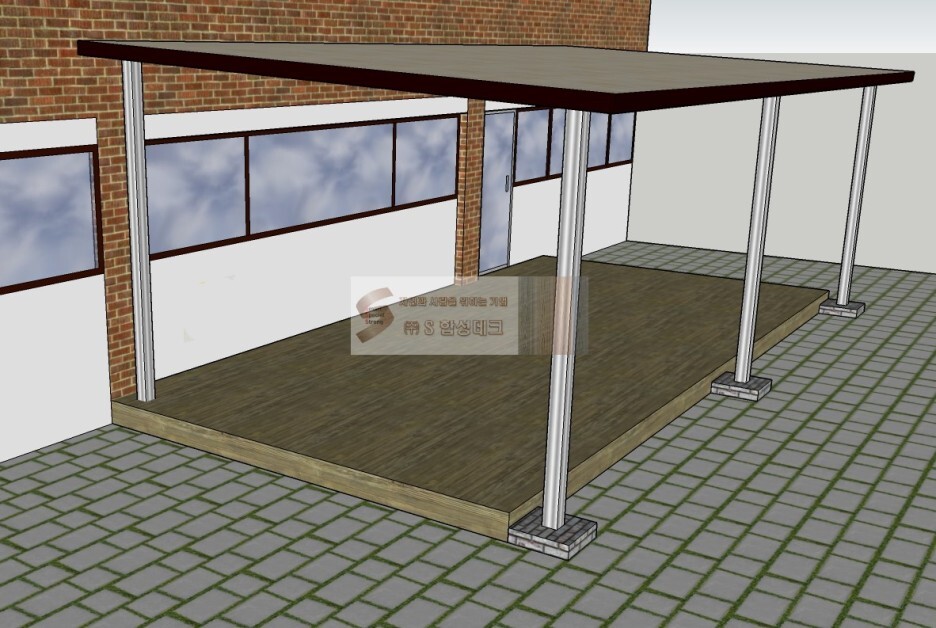 캐노피 지붕 아래 간단한 합성데크 공사를 통하여