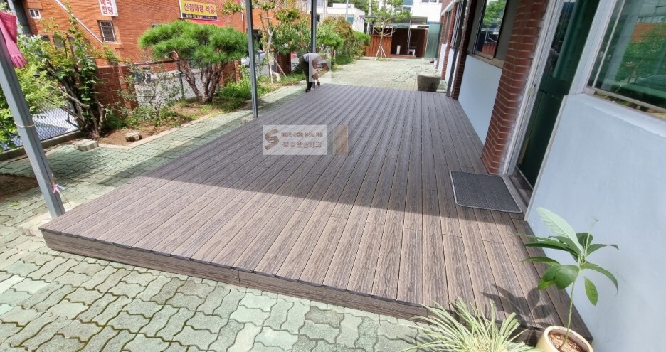 이 공간에 합성데크(미네랄데크)로 데크 바닥을 시공하여