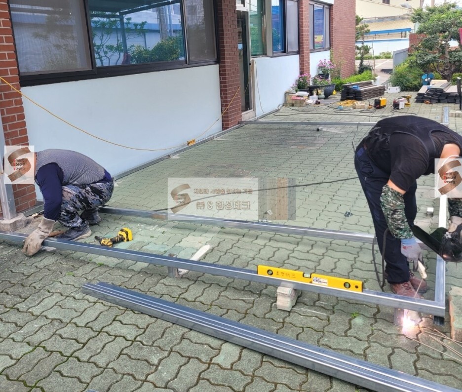 먼저 녹과 부식 방지를 위한 아연도각관을 이용하여 해당 면적의 테두리로 틀을 잡습니다.