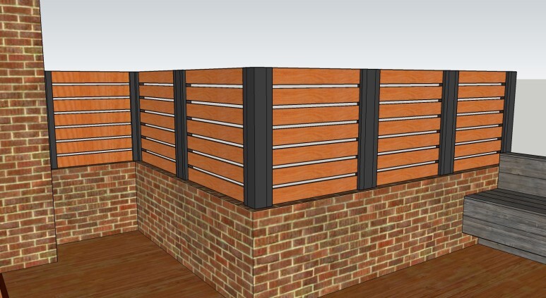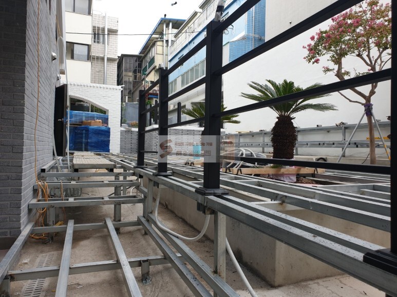 계획한 데크 벤치의 각관 하지와 난간, 가림막의 기둥들도 모두 튼튼히 작업해 준 모습입니다.