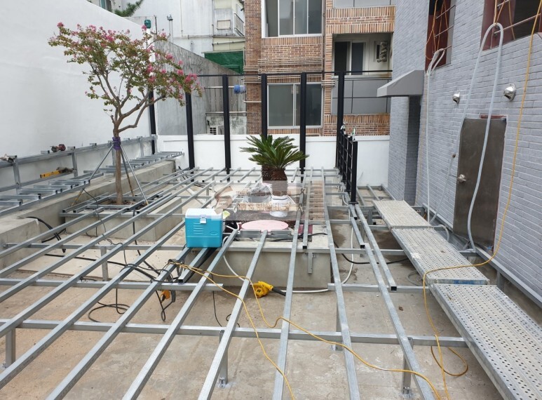 멍에[2000mm미만]와 장선[400mm미만]의 최적 간격을 현장 상황에 맞추어 용접 작업 하였습니다.