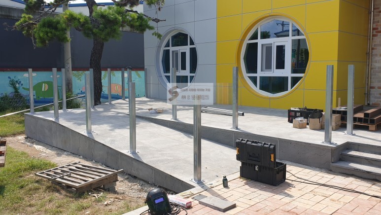 이렇게 모든 작업을 완료 하고나니 (램프구간 휠체어용 스텐핸드레일 작업까지)