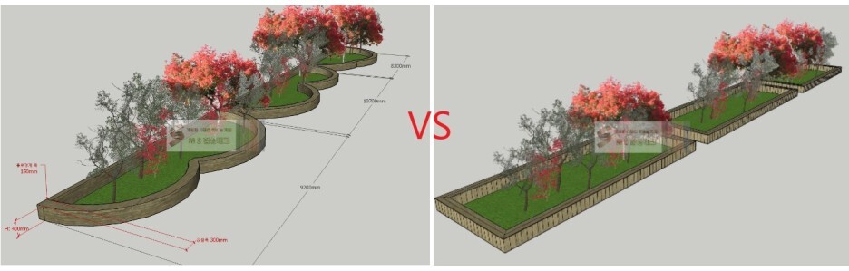 [한쪽이 과하게 높거나 낮을시 벤치/낮은 화단경계로의 높이가 모호해지기 때문이죠!]