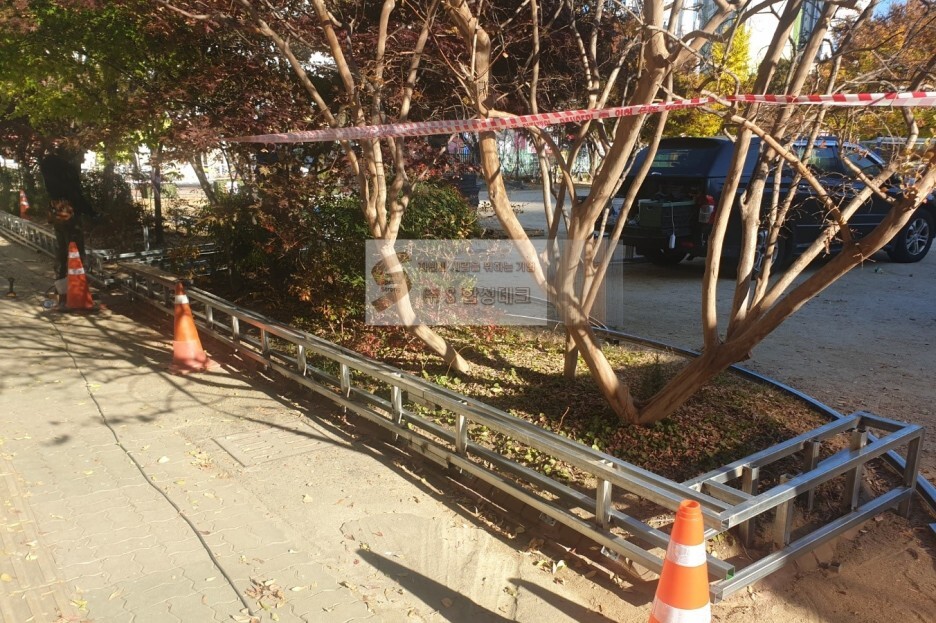 앵커볼트를 체결하고, 화단 안쪽으로는 지주를 깊게 박아 넣어 하지를 단단히 고정하였습니다.
