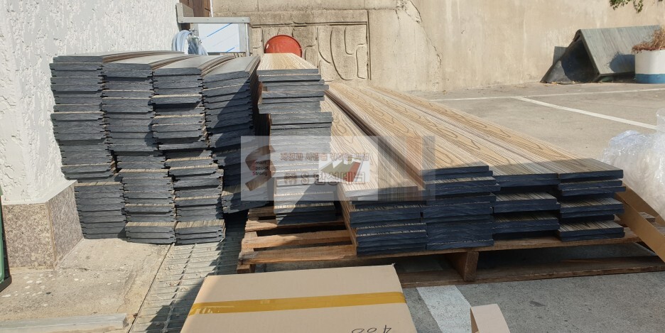 바닥 데크 시공사진과 벽체용 마감재 시공사진입니다.