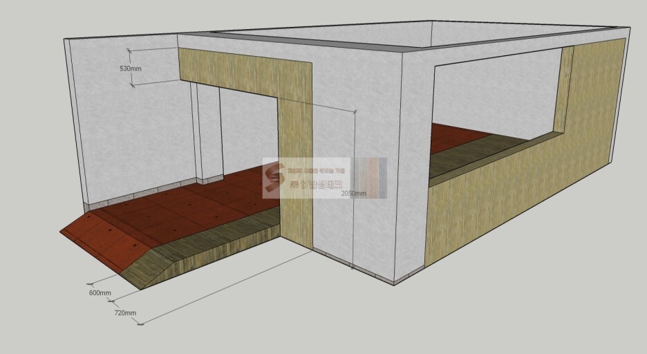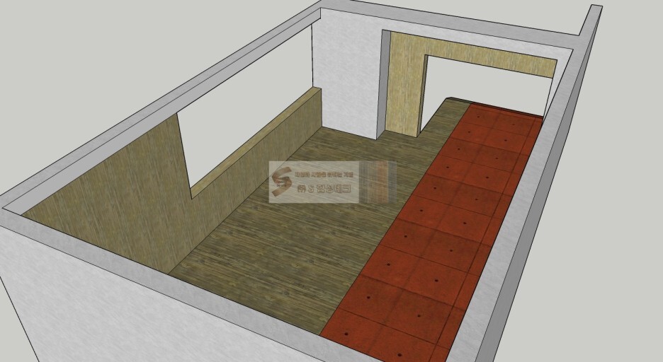 그다음 입구 벽체의 하지를 만들고 바닥 하지와 경계 지점을 만들어줍니다.