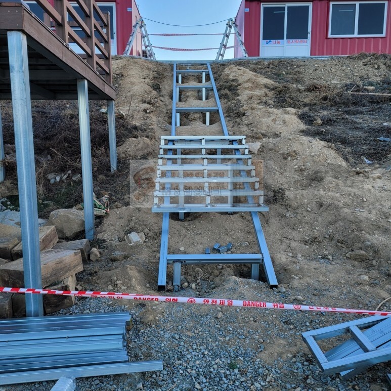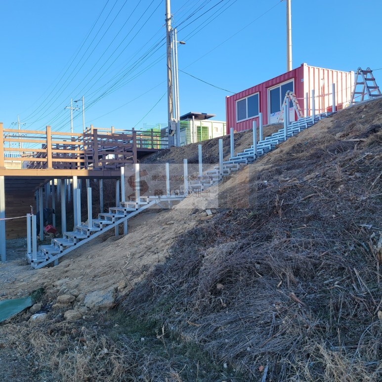 계단판을 만들어서 한 판씩 용접하여 붙힙니다.