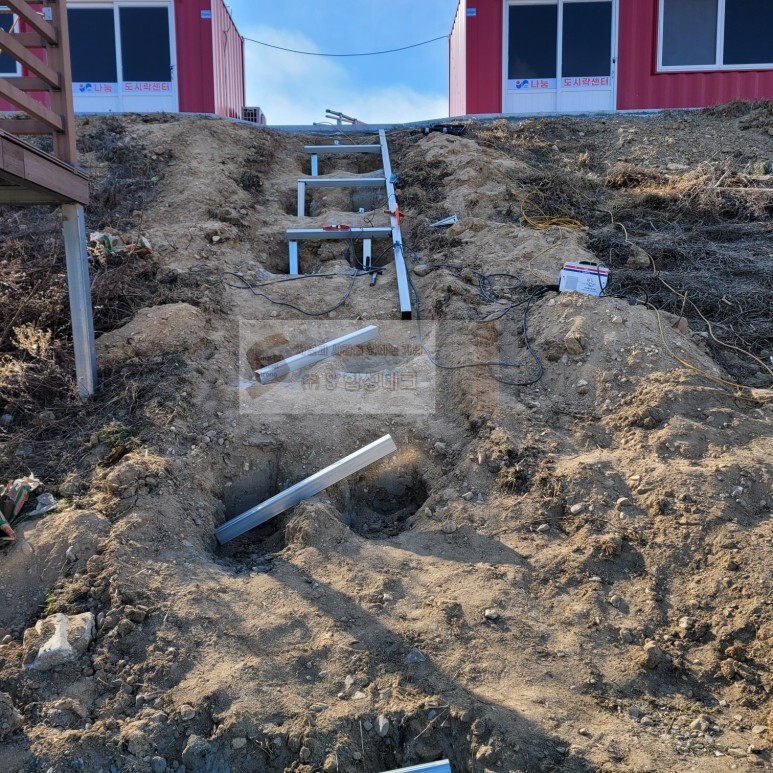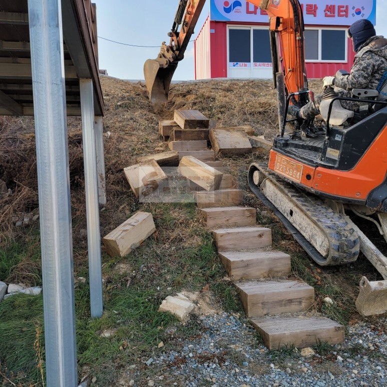 기존 계단 철거와 기초 터 파기를 진행하였습니다.