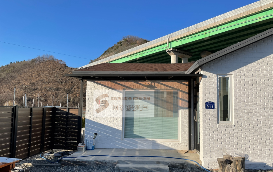 주택 앞뒤로 가림막과 잘 어울리도록 미네랄 판재(DB)를 사용하여