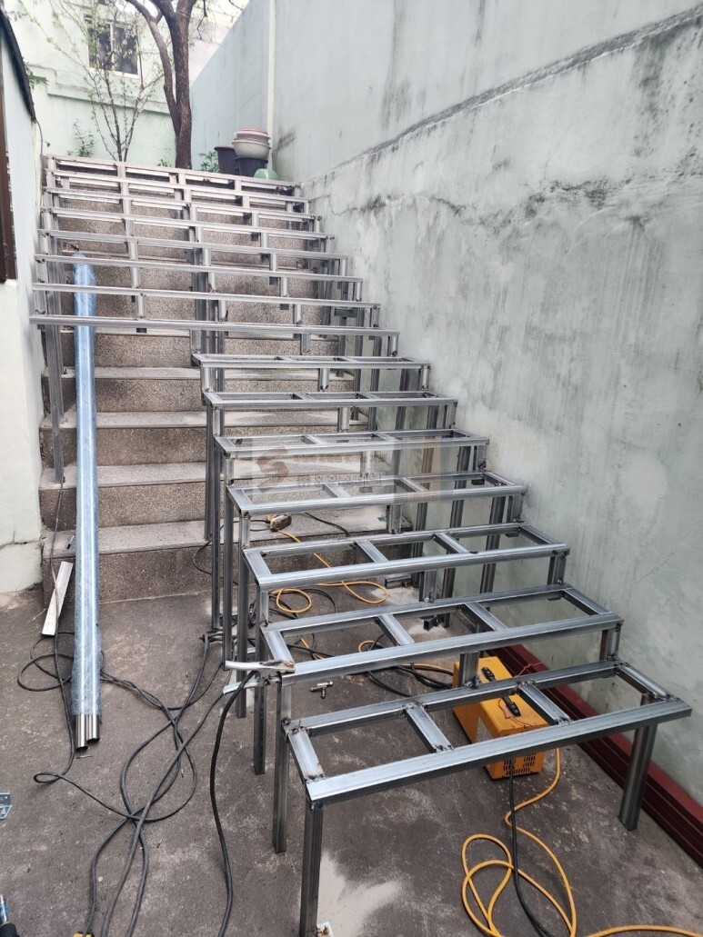 계단 틀을 만들고 한단 한단 정성스레 용접해서