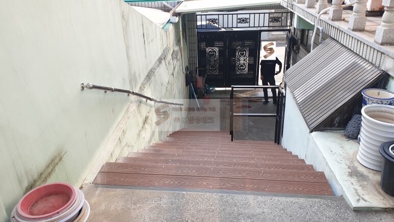 월넛 톤의 데크 계단으로 탈바꿈했습니다.