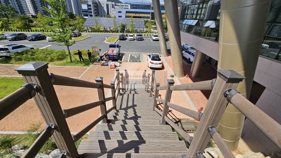 건물과 이질감이 없이 원래 있었던 계단처럼 느껴지고