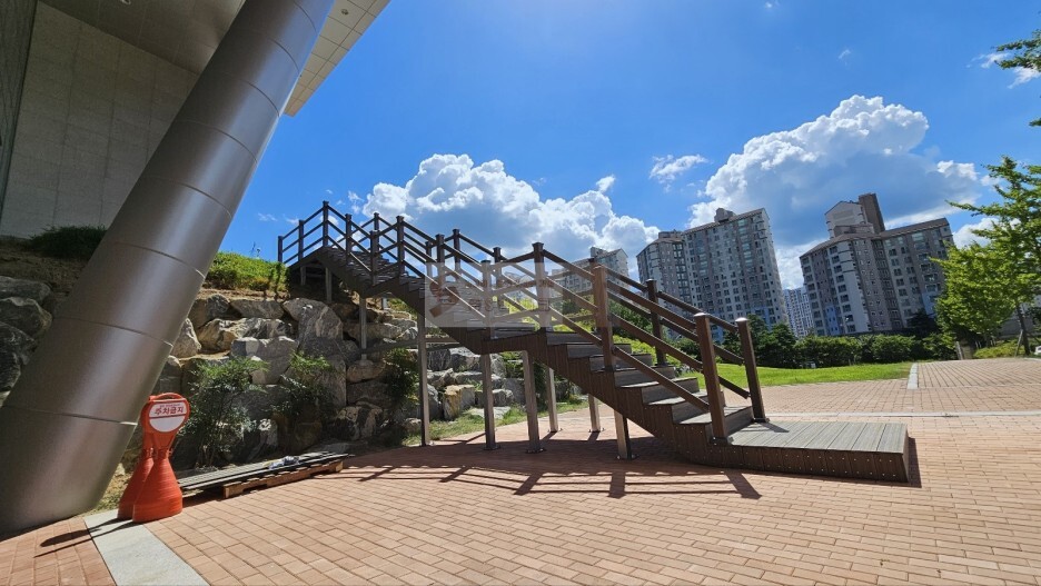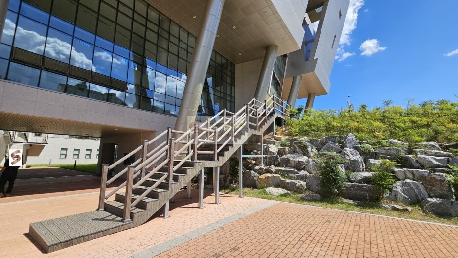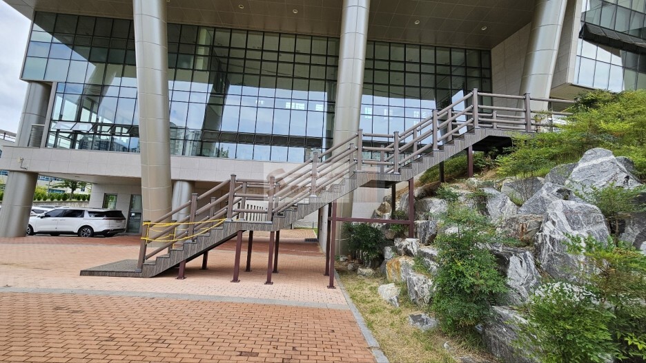 건물 정문의 데크 계단이 한눈에 눈길을 사로잡습니다!!