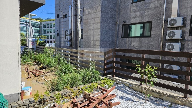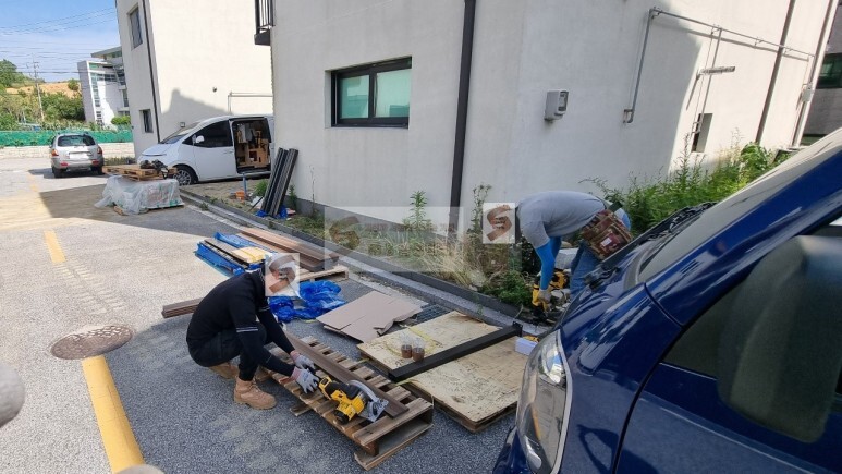 1층 외부 방부목 울타리 철거 후 래티스 울타리 설치를
