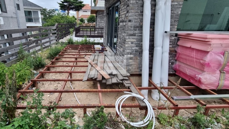 흙다짐 작업 이후 데크 시공을 하도록 합니다.