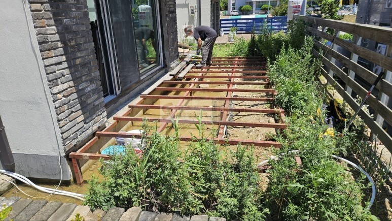 1층 방부목 데크 철거 후 미네랄 데크 시공,