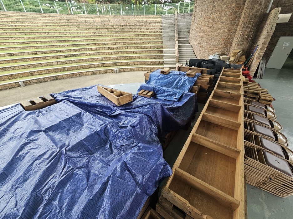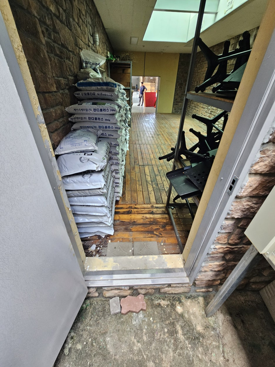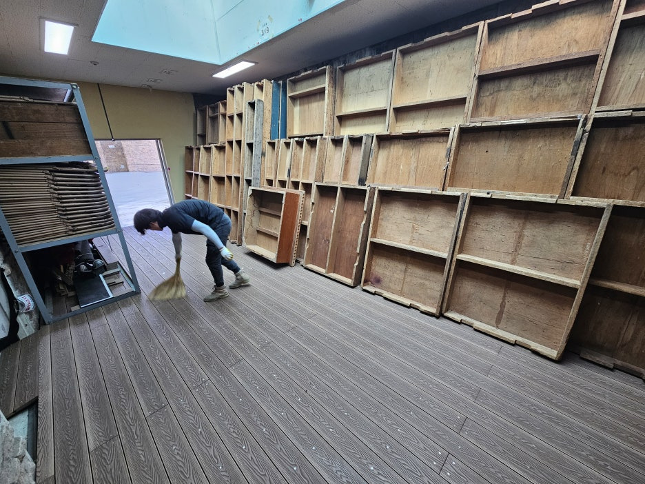 음악당의 요청에 따라서 튼튼한 바닥으로 교체된 창고에